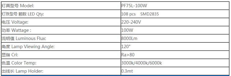 PF75L-100W產(chǎn)品規(guī)格: